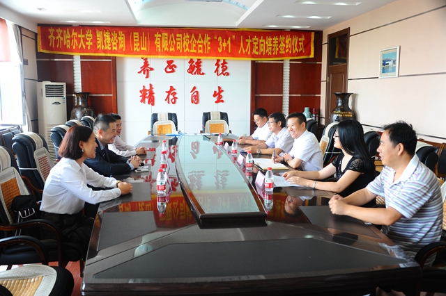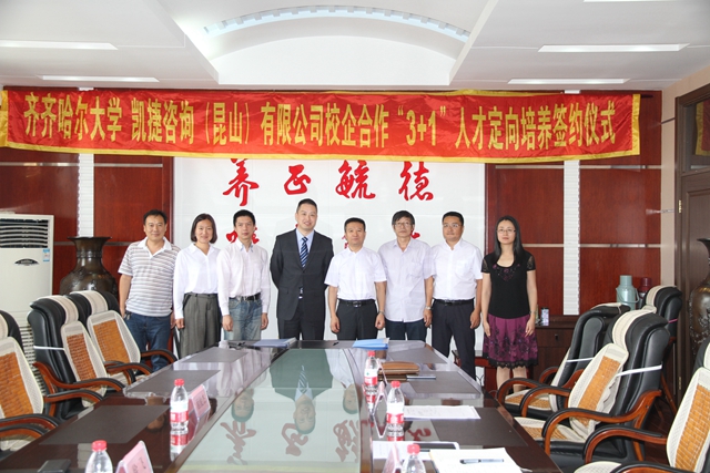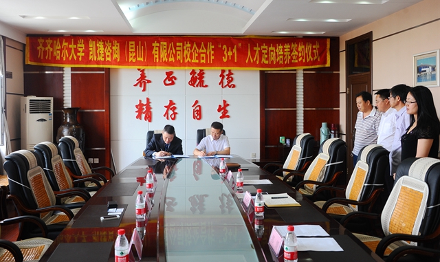 8月27日,齐齐哈尔大学与凯捷咨询(昆山)有限公司校企合作“3+1”人才定向培养签约仪式在中区办公楼504会议室隆重举行。