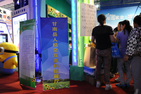 在今年的绿博会上,我校美术与艺术设计学院姜在新教授带领他的团队与甘南县政府联合开发的人机体感互动艺术作品受到关注。8月31日下午,校党委书记李海红、副书记盖元臣来到展厅观看了作品演示。