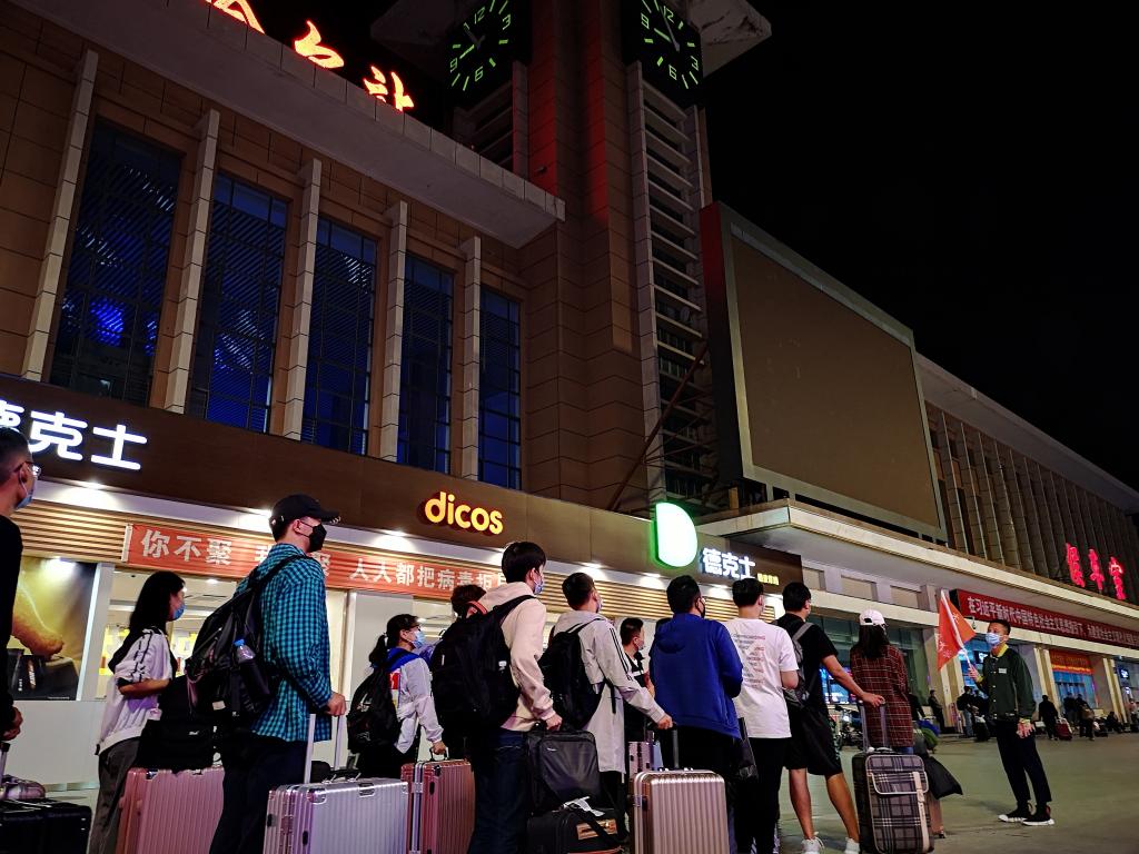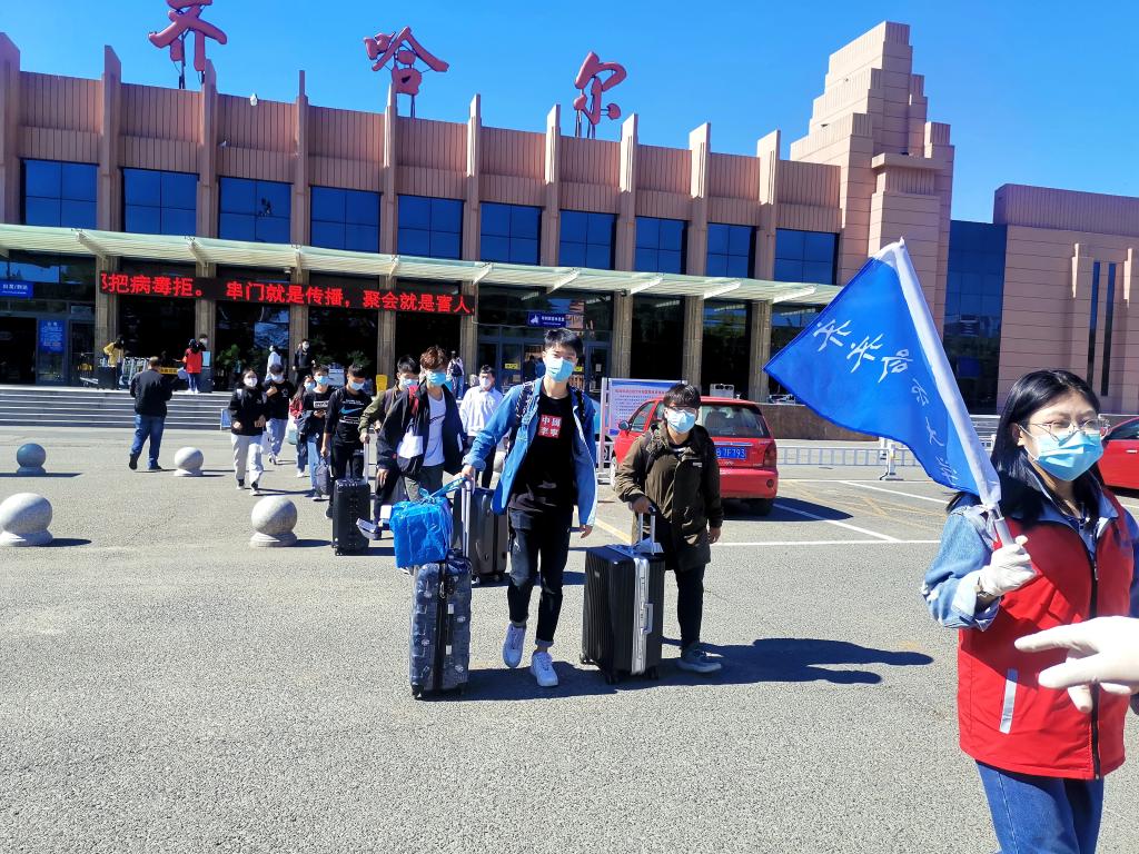 为确保第三批学生返校工作安全有序进行,按照学生返校前的工作部署,学校在齐齐哈尔站、齐齐哈尔南站、客运站、飞机场等站点都设置了乘车接站点,实行“一对一”服务,“点对点”对接,实现“闭环式”无缝衔接,保证学生们的安全。“同学,请扫健康码”“欢迎回家!”等温馨提示和暖心话语让返校学生倍感亲切。辅导员老师们接过学生手里的行李,然后就是说不完的话,半年多未见,诉不尽想念。