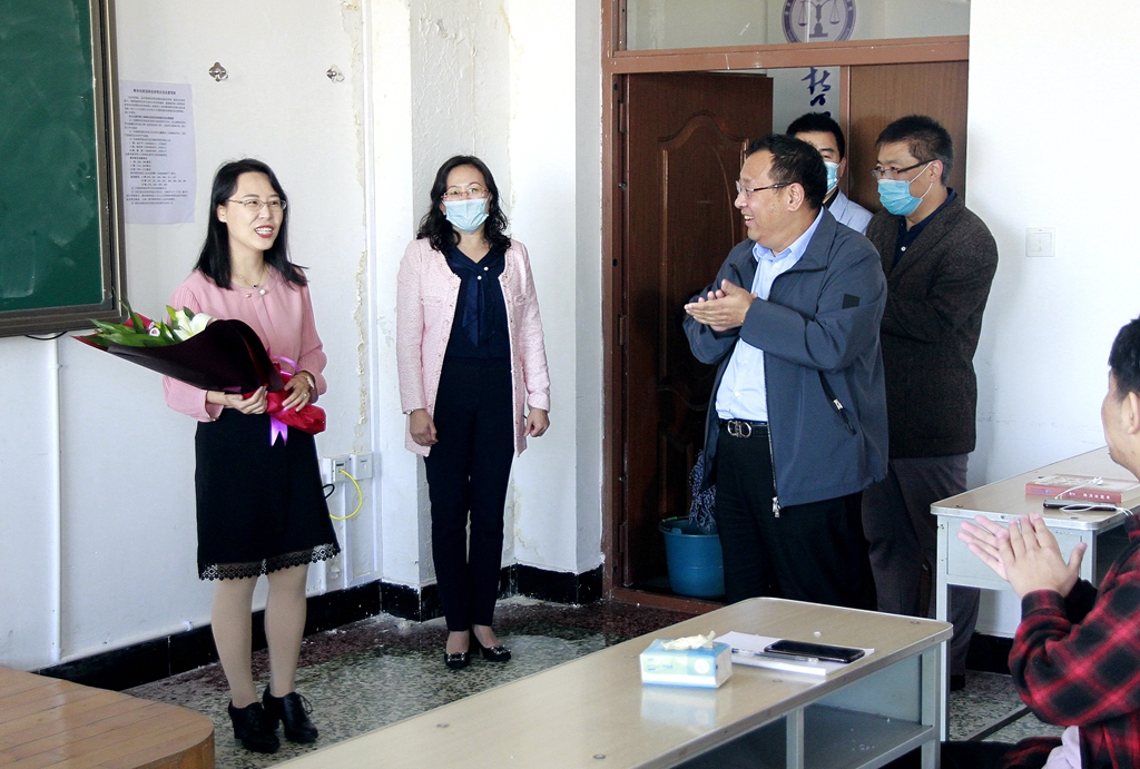 校长董玉庭来到25教617教室慰问哲学与法学学院教师文静