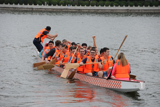 龙腾盛世,端午竞渡。劳动湖作为鹤城的宝贵自然资源,水清岸洁,与嫩江水一脉相通,是开展龙舟运动的理想之地。齐齐哈尔大学是一所美丽的环湖大学。多年来,齐齐哈尔大学积极开展龙舟运动等文体活动,举办群众热情参与的水上运动项目,与鹤城文化交相辉映,互相支撑,相得益彰,履行现代大学文化传承与创新职能。