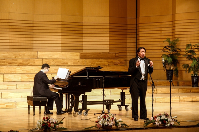 4月17日晚,著名旅欧美低男中音歌唱家孙禹应我校音乐与舞蹈学院邀请来我校举办音乐会。校领导李海红、邓启刚、李敏义等出席音乐会,与我校音乐与舞蹈学院的领导、师生一起欣赏了精彩的演出。