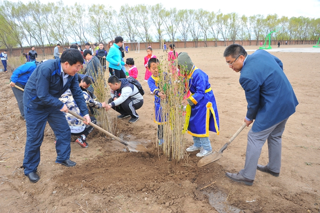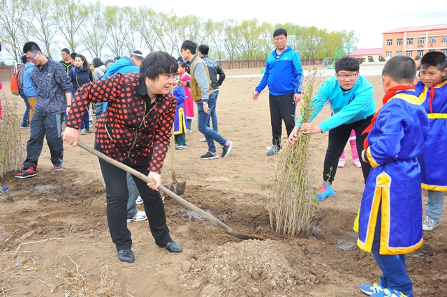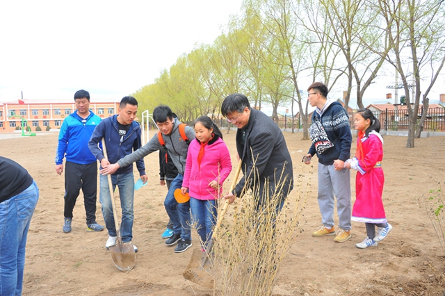 捐资助学仪式结束后,领导及师生一行人来到了哈拉达族小学的“鸿雁工程林”,并在这片联系着食品学院与哈拉达族小学18年情感从未间断的土地上植下了一棵棵“励志树”,这些小小的树苗除了代表着友谊、爱心和奉献以外,还代表了齐大师生所给予的希望与肩上的责任。志愿服务小分队的同学们与小学生们一同进行着丰富有趣的游戏,操场上不断传来师生们和孩子们喜悦的笑声。