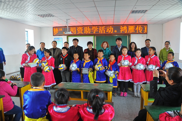 随后,“鸿雁工程”的发起人之一,食品学院党委书记杨淳代表学院做了讲话,他深情地回顾了“鸿雁工程”的发展历程,他说历经18年“鸿雁工程”必将在阳光雨露的滋润下,在社会各界的关注下,焕发出勃勃生机。大手和小手之间从最初以书信往来的心灵互动,到现在同心协力捐资助学,在这一系列互访互动过程中,不仅让小手们深刻了解了外面世界的丰富,对未来产生了美好的憧憬,更让大学生在帮扶活动中,自身素质得到提高,促进了大学生专业知识的学习和掌握,进而使得人生境界得到升华,同时也使大学生了解了少数民族的文化,完善了人生,充实了生活,对小学生心灵上的影响也是深远、深刻的。最后,杨书记祝愿“鸿雁工程”之花常开,“鸿雁工程”之林长青,愿齐大和哈拉达族小学两校明天建设得更美好。