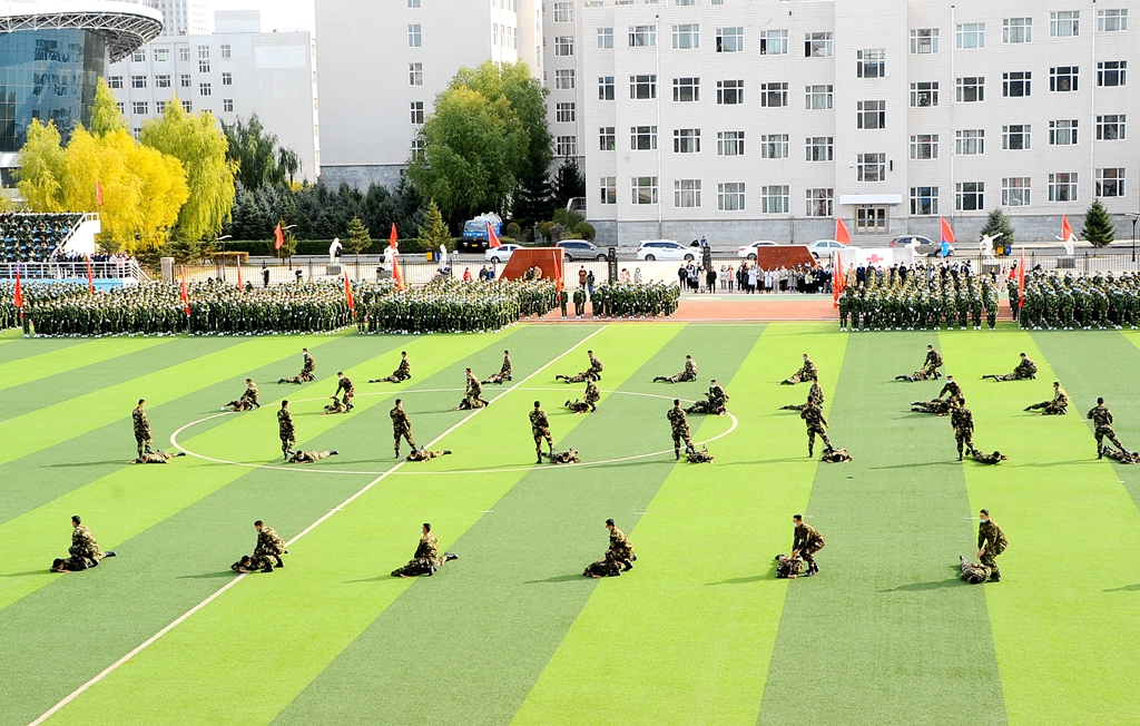 军训总结大会结束后,与会校领导及军训团司、政、后领导成员与武警齐齐哈尔支队官兵合影留念。