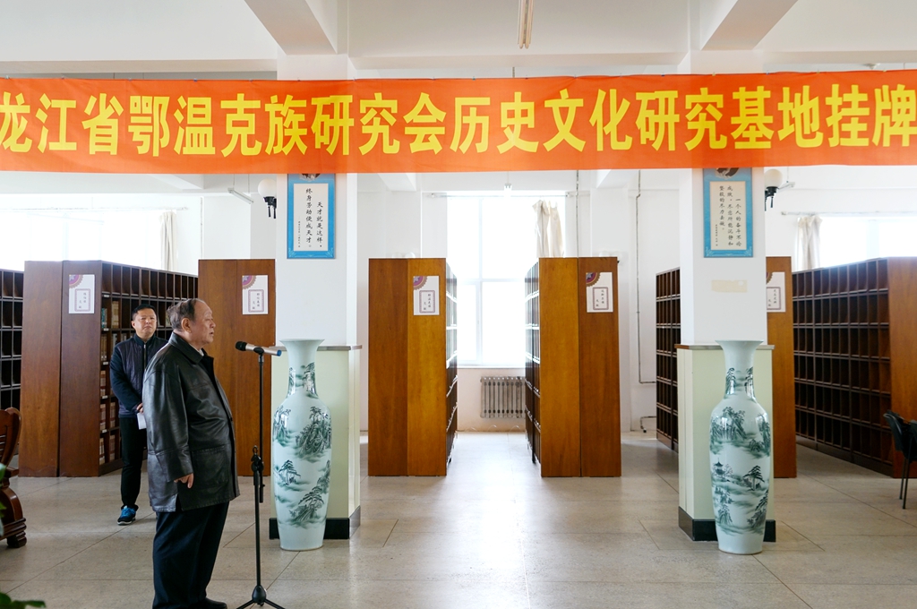 10月17日上午,黑龙江省鄂温克族研究会历史文化研究基地挂牌仪式在我校中校区图书馆举行。校党委书记陈桂芝,黑龙江省民族研究所所长、省民族研究会会长谷文双,黑龙江省鄂温克族研究会会长涂亚君,内蒙古鄂温克族研究会会长达喜扎布,讷河市委副书记东宇辉出席仪式。我校党委常委、宣传部长王晓梅和相关职能部门、学院负责人、专家以及师生代表参加了仪式。科研处副处长伊全胜主持仪式。