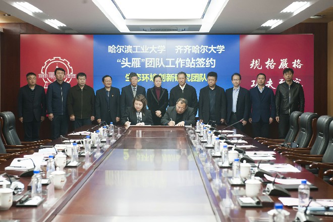 据了解,“头雁”行动是黑龙江省委省政府作出的重大人才战略部署。此次签约的航天化工新材料创新研究团队,长期致力于聚合物基复合材料的基础科学、关键技术和工程化研究,依托平台为极端环境营养分子合成转化与分离技术国家地方联合工程实验室;生态环境创新研究团队长期致力于污水处理及能源化理论研究、技术研发与工程应用,依托平台为城市水资源与水环境国家重点实验室。我校是与哈尔滨工业大学共建“头雁”团队工作站的首个高校,将以此次签约为契机,加强两校交流合作,抓好相关学院、学科与“头雁”团队对接,明确具体合作项目,充分发挥“头雁”团队工作站在我校学科建设、人才培育和科研引领作用,切实加快我校高水平大学建设步伐,高质量地服务于区域经济社会发展。