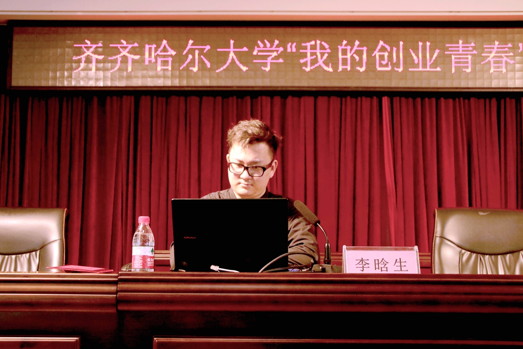 开幕式后,举行本届科技节第一项校级活动—“我的创业青春”大学生创业故事分享会。学校特聘的齐齐哈尔大学创新创业导师、青年创业代表李晗生与在场师生共同分享了他的创新创业故事。