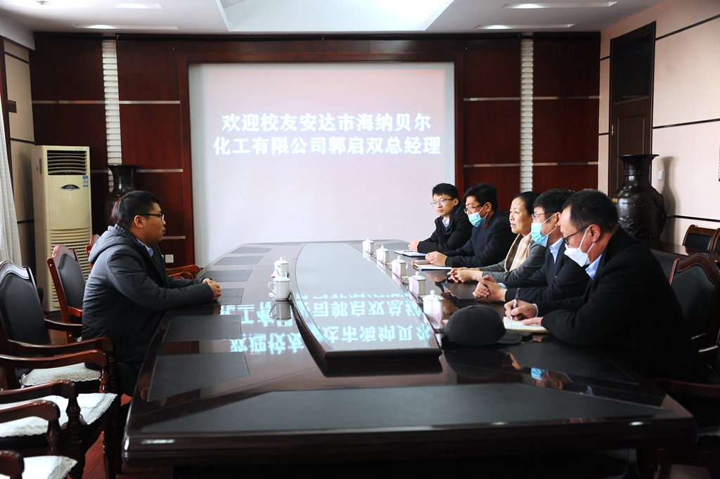 11月19日上午,校党委书记陈桂芝、副书记张文治在学校办公楼504会议室会见了我校化学工程与工艺专业2010届校友、安达市海纳贝尔化工有限公司总经理郭启双一行。校党委常委、组织部长马文辉和化学与化学工程学院、材料科学与工程学院负责人参加了会见。