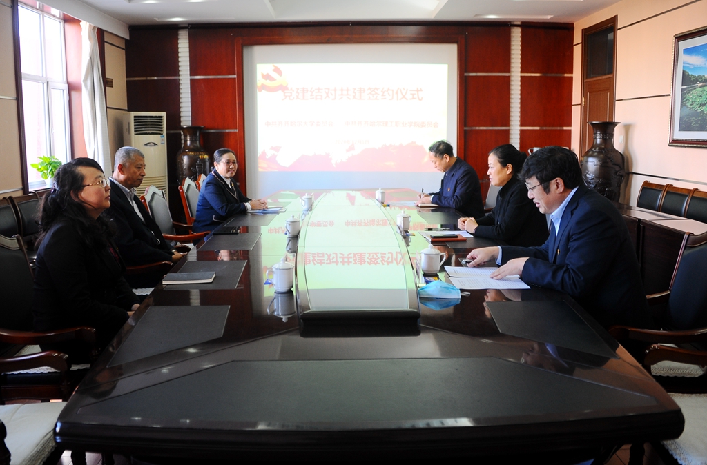 为深入贯彻落实省委教育工委《关于黑龙江省公办高校与民办高校党建结对共建的指导意见》文件精神,有效推进我校与民办高校党建结对共建工作,促进公办高校与民办高校党建共融共建,我校与齐齐哈尔理工职业学院开展党建结对共建。