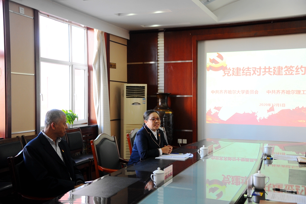 李虹在随后的讲话中简要介绍了齐齐哈尔理工职业学院党建工作的基本情况,并表示,本次党建结对共建工作定会对学院的党建工作乃至学院的事业发展带来新的突破与提升,齐齐哈尔理工职业学院党委会倍加珍惜合作共建机会,下一步将积极主动对接,认真学习齐大党建工作和办学治校好的经验与做法,紧紧围绕共建任务目标,扎实深入推荐共建活动,力争在共建中形成一批高质量的结对共建成果。