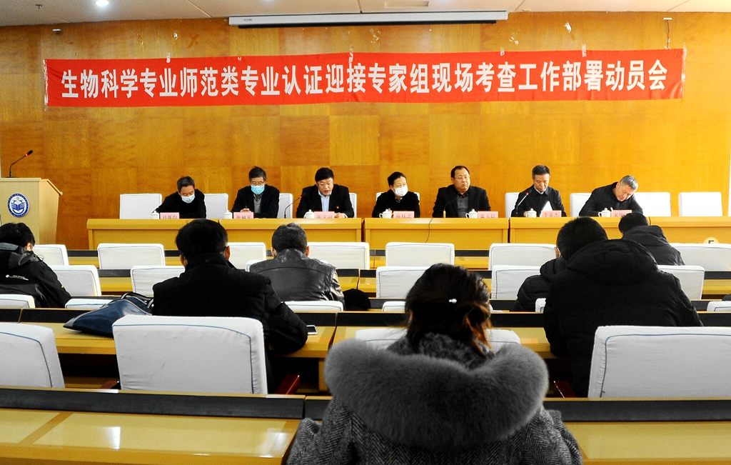 12月1日下午,学校在西区主楼七楼学术报告厅召开生物科学专业教育部师范类专业二级认证迎接专家组现场考查工作部署动员会,校领导陈桂芝、董玉庭、张文治、李英杰、姜国庆、张树军、吕厚均出席会议,相关职能部门和各教学单位负责人、教务处和生命科学与农林学院领导班子全体成员及生物科学专业带头人参加了会议。会议由校党委副书记张文治主持。