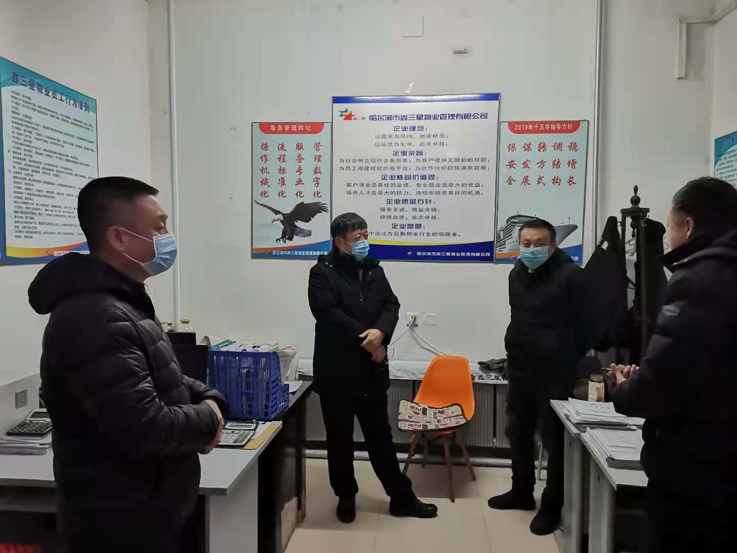 张文治一行还来到鑫三星物业公司办公室走访慰问,与项目经理等工作人员亲切攀谈,在认真听取鑫三星物业公司相关负责人的工作汇报后,他肯定了物业公司近期的工作成绩,要求物业公司加强门卫、更夫的培训管理工作,严格测温扫码进公寓等程序,坚决外卖杜绝送餐到寝室等行为。并鼓励物业公司尽心做好师生服务工作,实现多方共赢,为学校提供更优质服务。