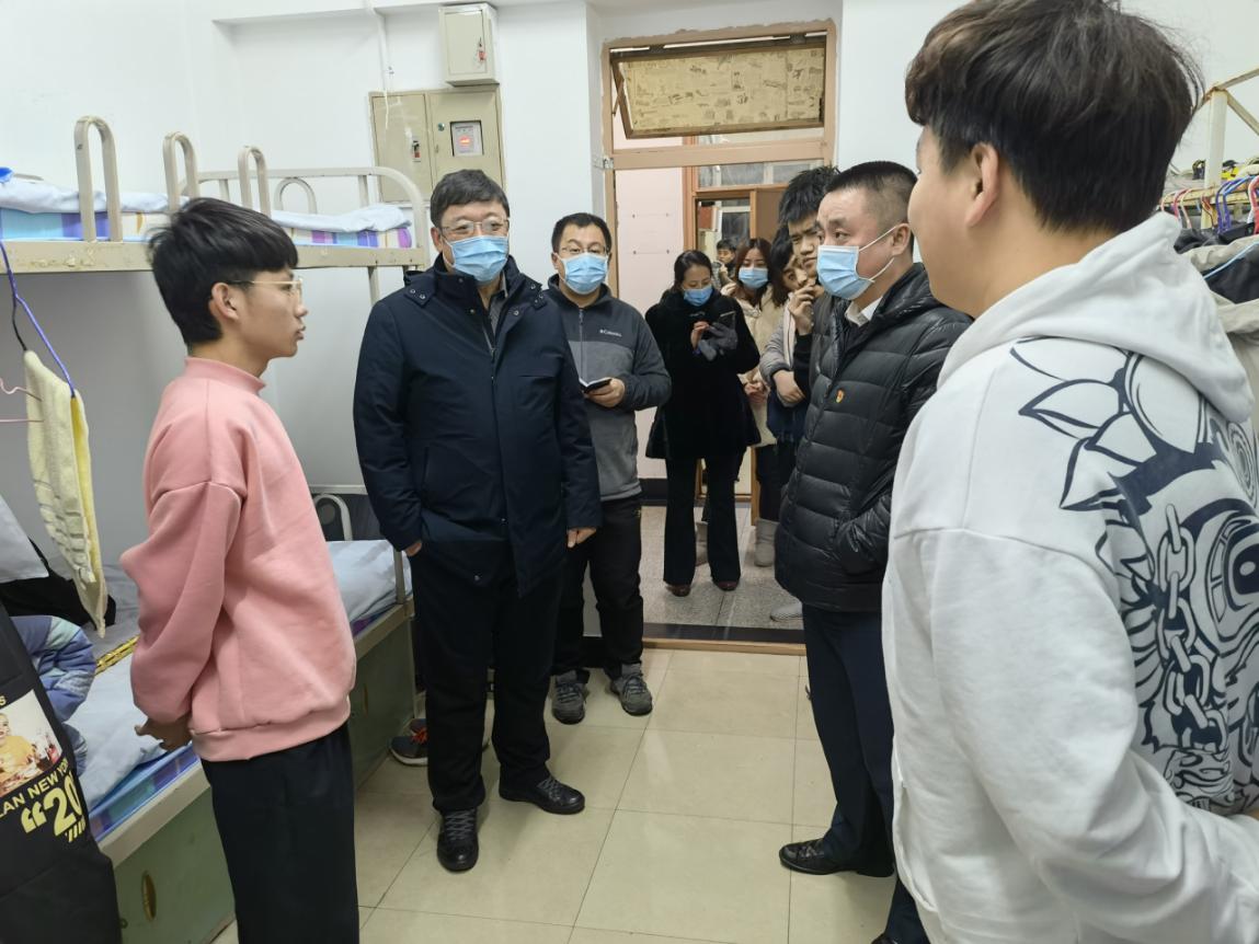为进一步做好元旦、寒假放假前校园安全稳定和疫情防控工作,2020年12月31日下午,校党委副书记张文治率领学生工作部(学生处)工作人员深入学生寝室,走访慰问在校学生,代表学校向同学们致以新年问候,了解学生期末复习和返乡准备情况。