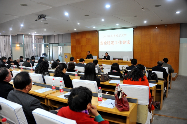 会上,与会人员集体观看了安全稳定工作宣传教育视频,校保卫处处长吴刚传达了国家、省、市相关安全稳定工作会议及文件精神。