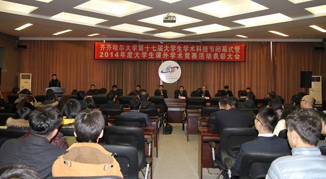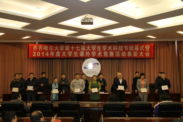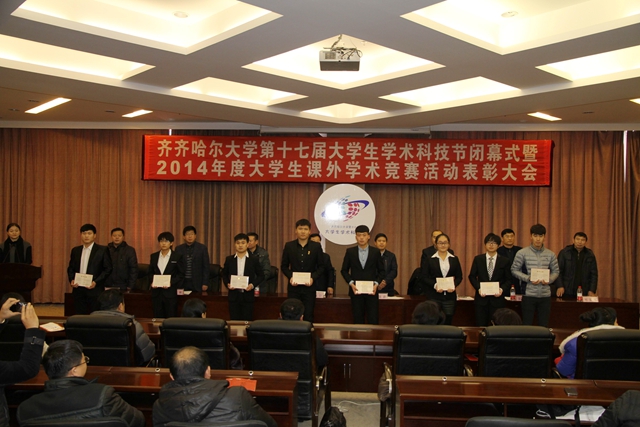 闭幕式上,马文辉宣读了《2014年度在全国、全省课外学术竞赛活动中获奖学生和指导教师名单》和《齐齐哈尔大学2014年度学生课外学术竞赛活动先进集体获奖名单》,姜波宣读了《齐齐哈尔大学第十一届大学生课外学术科技作品竞赛终审决赛获奖名单》和《第九届学生社团学术科技巡礼月获奖名单》,刘喜军宣读了《第二届研究生科技创新作品竞赛获奖作品和优秀指导教师名单》。