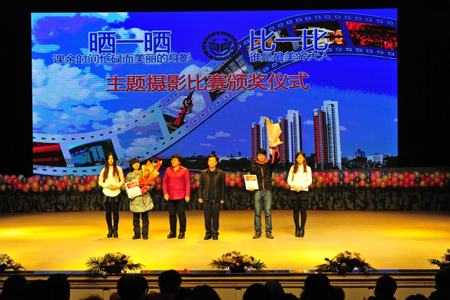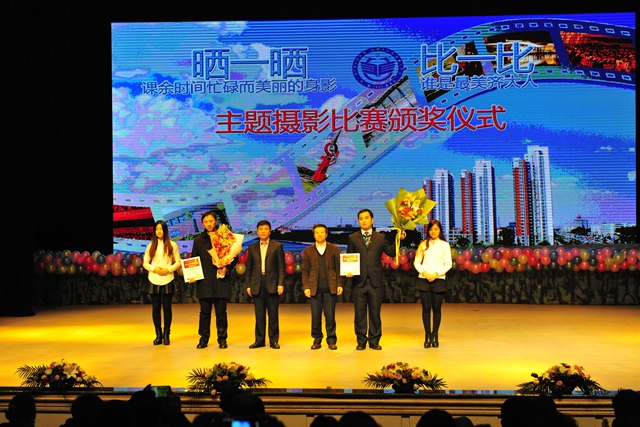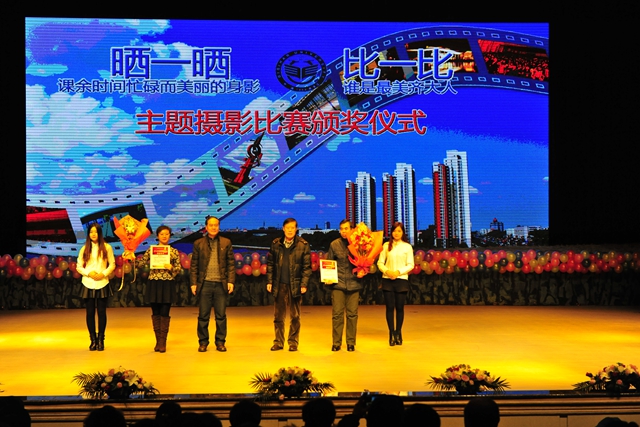 2014年12月31日下午,第二届“晒一晒,课余时间那些美丽的身影;比一比,谁是最美齐大人”主题摄影活动颁奖仪式在文化宫隆重举行。校领导李海红、王凤琴、盖元臣、张学军、郑喜群、王刚、李英杰、李敏义等出席颁奖仪式并为获奖者颁奖。