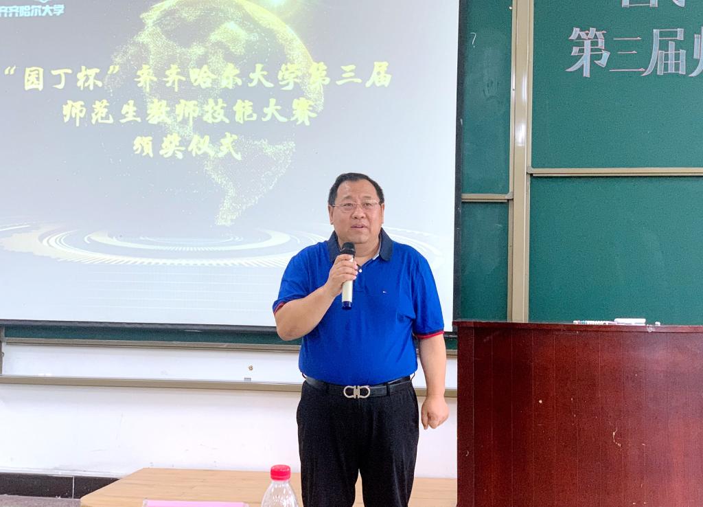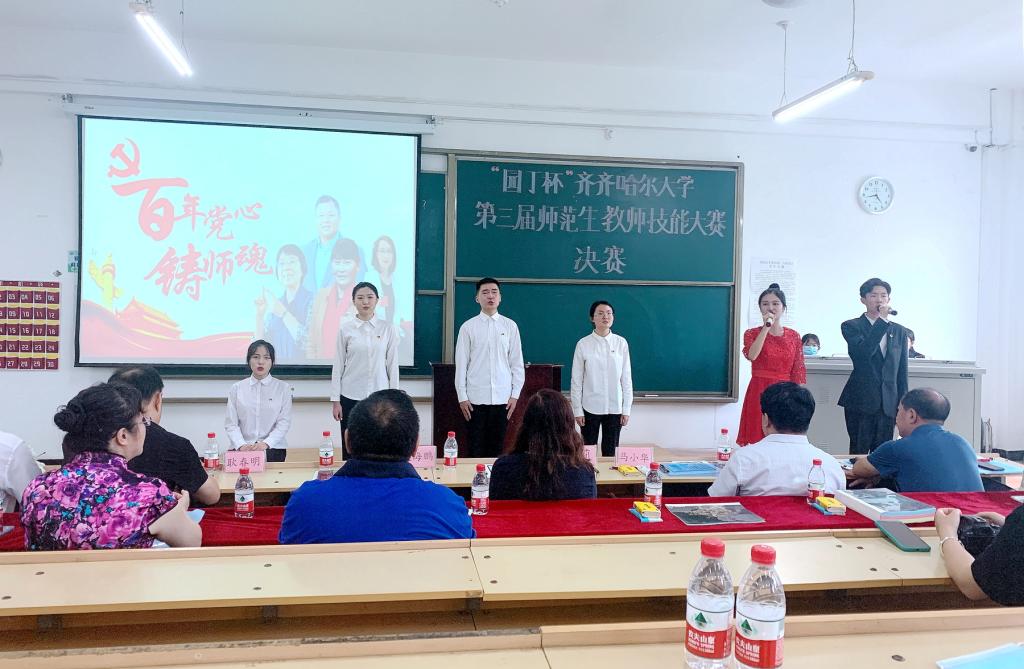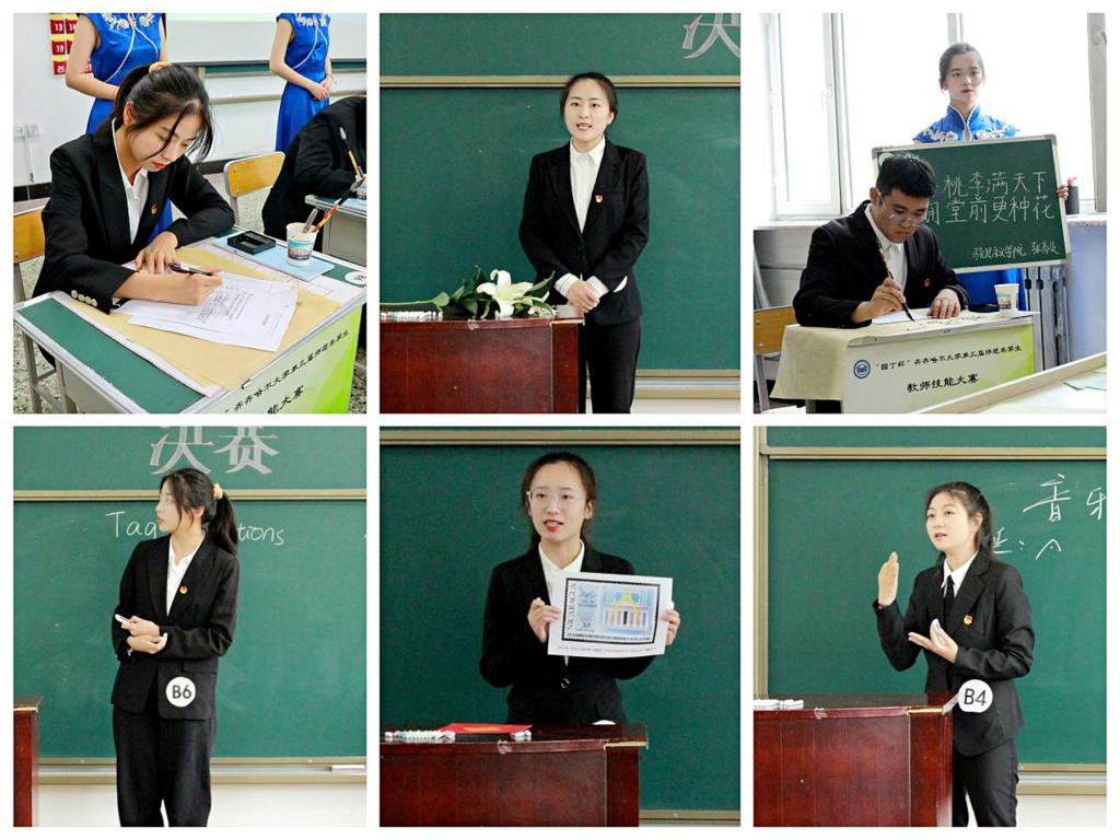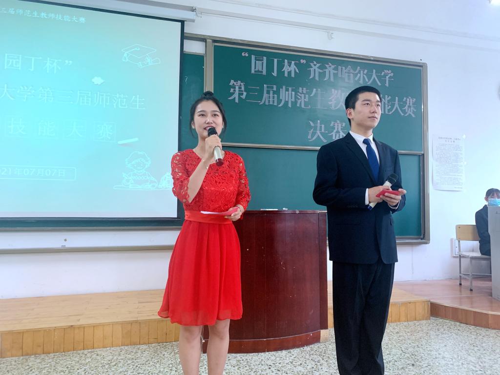 为切实加强师范类专业建设,强化师范生教学技能培养,努力实现“一践行三学会”的人才培养目标,7月7日下午,由教务处、校团委主办,教师教育学院承办的“园丁杯”齐齐哈尔大学第三届师范生教师技能大赛决赛在25教阶教202举行。大赛决赛由教师教育学院学生张欲东和杨雅琪主持。