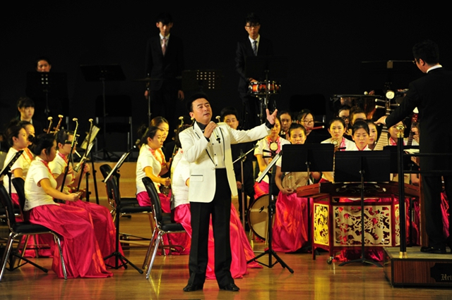 我校民族交响乐团为在哈五所高校师生献上了一场精彩纷呈的民族交响艺术盛宴,在韵律、表现力及民族音乐的普及上融入和赋予了更多的现代时尚气息,以二胡、古筝、竹笛、唢呐等多种乐器演奏了经典曲目,让观众领略了不同风格音乐作品的艺术魅力,传达着美好的祝福,观众的思绪也随之进入华美的音乐殿堂。乐团全体成员演奏的乐曲《One Night In Beijing》(《北京一夜》)是根据音乐人陈升的同名歌曲改编而成的,通过对这首富有韵味且脍炙人口的流行歌曲的编创,使中国民族管弦乐队在色彩、表现力及民族音乐的普及上给予更多的现代时尚气息。