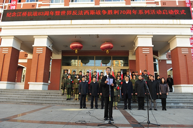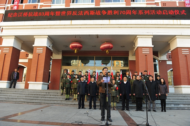 2014年11月4日,是江桥抗战83周年纪念日。上午9:45,齐齐哈尔大学主题为“铭记历史、警示未来”“纪念江桥抗战83周年暨世界反法西斯战争胜利70周年系列活动启动仪式”在中区广场隆重举行,标志着我校2015年将历时一年的纪念世界反法西斯战争胜利70周年系列纪念活动全面启动。