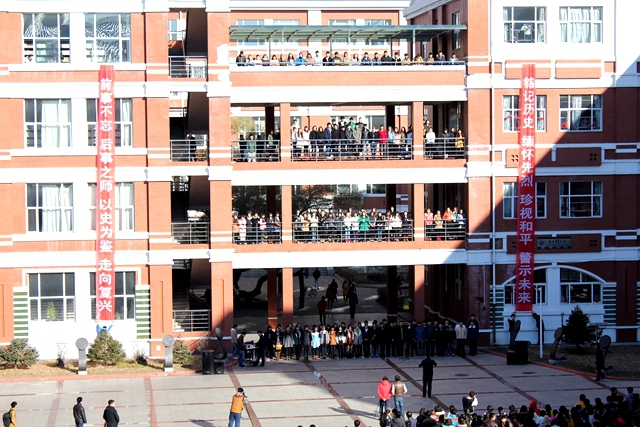 校学生会主席李成同学最后表示,战火的硝烟已经消散,忘战必危的警讯依然在鸣响。让我们牢记历史,勿忘国耻,为实现中华民族伟大复兴的中国梦而奋发学习!上课的铃声已经敲响,现在就让我们回到教室,回到课桌前,潜心开始我们的学习吧!