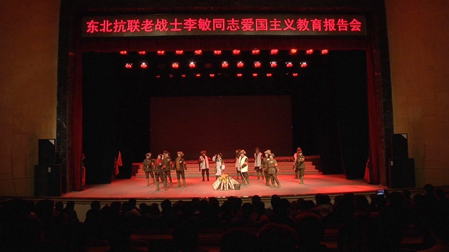 报告会结束后,业已91岁的李敏同志还带领“抗联精神宣传小分队”的成员们将为我校师生表演了《露营之歌》、《祭冷云》、《松花江,千万不能忘》、《走向复兴》9个精彩的文艺节目,寓教于乐,润物无声,沁润心田,令人由衷敬仰。
