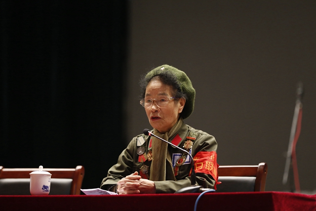 在专题报告中,李敏同志用自己一生浴血奋战的亲身经历和多年搜集积累的资料,与现场师生一起重温了东北抗日联军在中国共产党的领导下,历经艰难险阻,浴血奋战、荡气回肠的革命战争史;真实还原了东北抗日联军遭受敌军围剿、断水断粮,靠米糠、野菜充饥仍英勇斗争、不屈不挠的战斗征程;讲述了当年与战友们在枪林弹雨中成长的革命故事以及她们终生不渝的爱国主义情怀。讲到动情处,李敏同志还情不自禁地唱起了抗联时期荡气回肠的《露营之歌》等歌曲,真实再现了东北抗日联军坚持14年抗击日寇的壮丽史诗以及东北抗联将士为民族大义、舍生忘死与敌寇搏杀的亮剑精神。李敏同志的报告,感情真挚,讲述精彩,满怀激情,持续约2个小时,令人由衷感动,让人真心敬佩。