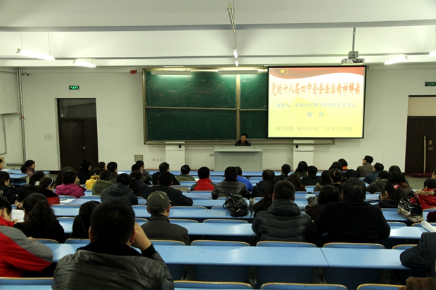 学习好、宣传好、贯彻好全会精神,是当前和今后一个时期全校的首要政治任务。连日来,按照学校《学习宣传党的十八届四中全会精神近期安排》,全校各级党组织高度重视,迅速行动起来,组织开展了形式多样、生动活泼的学习宣传贯彻活动。在各基层党委(直属党支部)和宣讲团成员的共同努力下,11月26日,我校党的十八届四中全会精神学习宣讲活动正式启动。