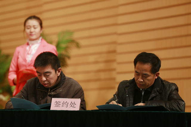 齐齐哈尔大学机电工程学院王宇清与齐齐哈尔通联机械制造有限责任公司副总经理刘景泉同志签署《数控大型电机转子环形槽加工专用机床》项目合作协议。