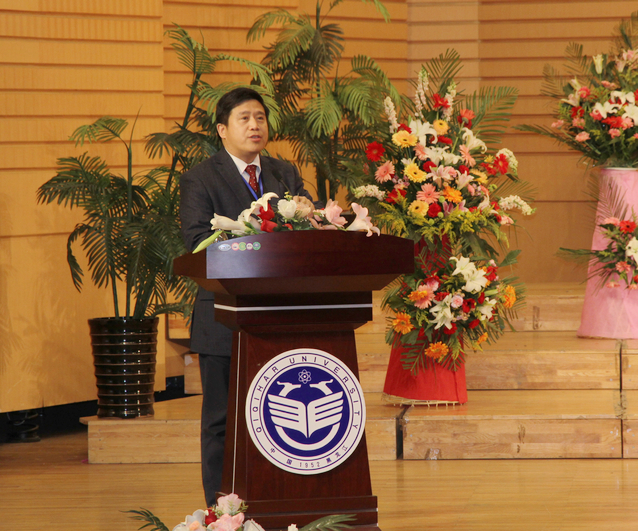 他指出,齐齐哈尔大学是黑龙江省重点建设的高水平大学,“立足地方、依托地方、服务地方”是学校履行大学职能的重要体现。本次共建推进会的召开,是校地贯彻落实11月21日省委副书记、省长陆昊同志主持召开的全省高校、科研院所高新技术成果产业化座谈会精神,落实我校“三大基地”发展战略、打造优势学科群、开展协同创新的重要举措,也是在前期的校企共建基础上的总结和延伸。从最初机电工程学院与企业科研项目合作到哈大齐工业走廊装备制造业技术创新战略联盟的成立,经历了几年化茧成蝶的升华过程。大学高度重视校企合作与对接,多次由校领导带队到企业参观、考察、调研。今天的合作也得到了齐齐哈尔市政府有关部门及省工信委和省教育厅的大力支持和帮助,齐齐哈尔市政府领导也先后多次到学校调研、考察,给予指导和鼓励。