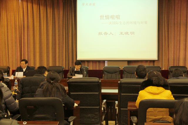 12月2日上午,黑龙江省委巡视组组长王晓明应邀在德润大厦四楼会议室为我校师生作了题为《世情喧喧——谈国际生态的环境与对策》的专题讲座。