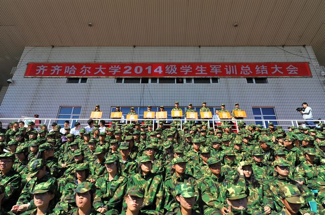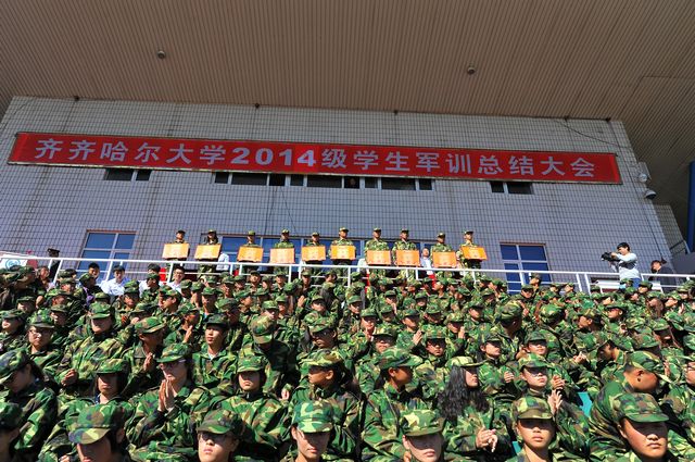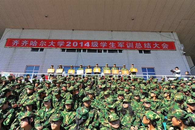 军训砥砺品格,品格成就人生。经过各部门、各学院精心组织,武警齐齐哈尔市支队参训教官精心施教,全体参训同学刻苦训练,历经11天的训练,我校2014级学生圆满完成了军训任务。