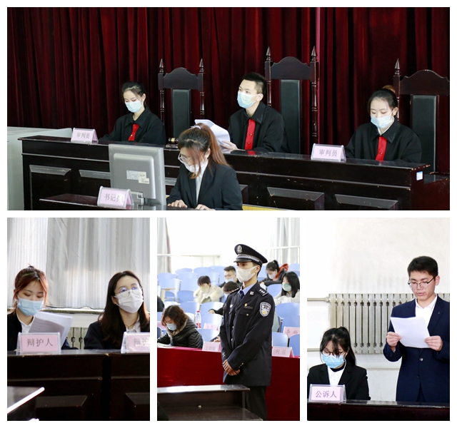 此次“模拟法庭”的主题是“以习近平法治思想为指引,坚定不移走中国特色社会主义法治道路”。“模拟法庭”的“审判长”“审判员”“书记员”“公诉人”“辩护人”“被告”“证人”和“法警”均由我校哲学与法学学院法学专业学生担任。在法学系老师的精心指导下,同学们利用课余时间编排了一场以真实案例改编的“帮助信息网络犯罪案”的模拟法庭庭审,让师生身临其境感受法治权威。