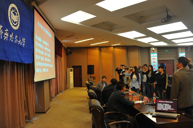 宣誓仪式上,由校学生工作处处长姜波领誓,15名新入职辅导员面对齐齐哈尔大学校旗郑重宣誓,光荣入职。