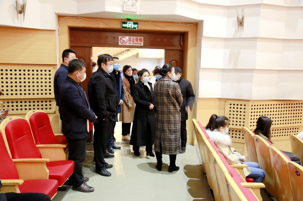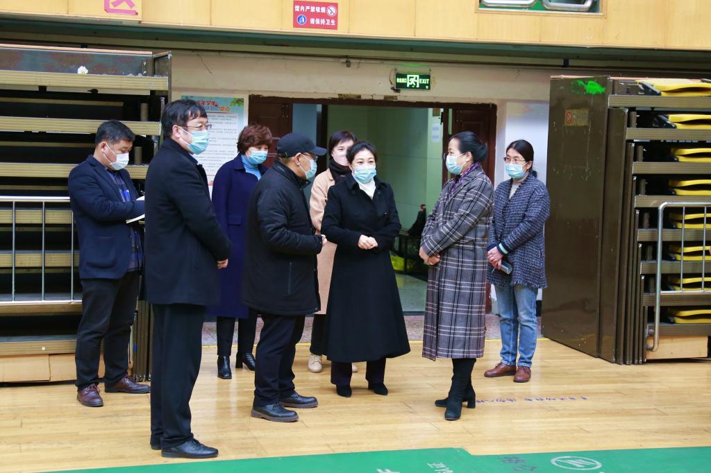 何晶一行先后实地走访查看了学校西区体育馆、中区音乐厅及东区图书馆等地。在实地走访过程中,检查组听取了我校党委书记陈桂芝,校长、党委副书记董玉庭关于学校近期疫情防控措施落实和应对突发情况预案等情况的介绍,深入了解了我校应急处置预案、防疫物资储备、餐饮服务安全、隔离观察区设置、快递日常防疫消杀、学生自我防护知识普及等情况,并对我校疫情防控工作提出了指导意见。