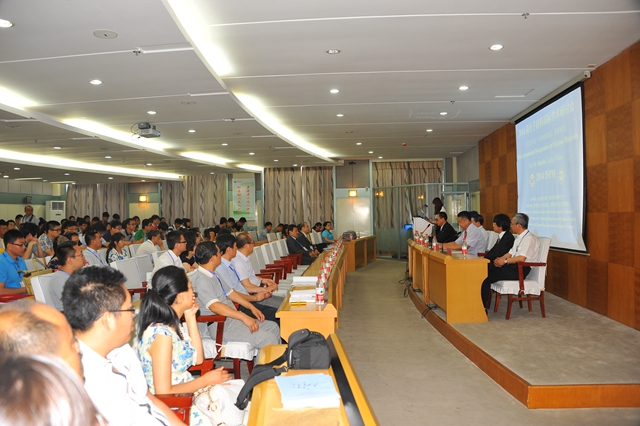 2014高分子材料国际学术研讨会”由齐齐哈尔大学、哈尔滨工程大学主办,齐齐哈尔大学科技处、材料科学与工程学院承办。学校办公室主任张德庆教授、人事处处长张文治教授、研究生处处长(研究生学院院长)刘喜军教授、化学与化学工程学院院长郭祥峰教授、材料科学与工程学院党委书记周强副教授、副院长李莉教授、副院长贾宏葛博士,化学与化学工程学院副院长赵明等百余名师生参加了此次学术会议开幕式。
