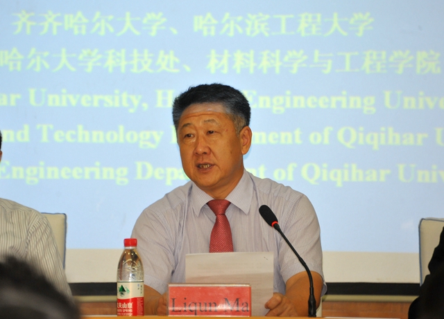 我校校长马立群教授在开幕式上代表学校致欢迎词。他说,在这个众英云集、群贤毕至的美好日子里,我们非常荣幸的迎来了“2014年高分子材料国际研讨会”的召开。在此,我谨代表齐齐哈尔大学,对研讨会的召开,表示衷心的祝贺!向远道而来的各位同仁表示热烈的欢迎!向鼎力支持的兄弟单位致以诚挚的谢意!