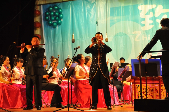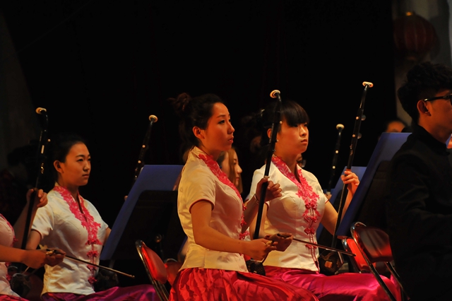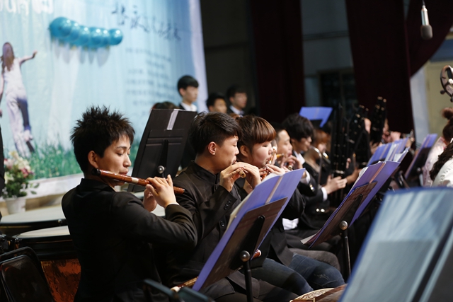 我校民族交响乐团为齐师专师生献上了一场精彩纷呈的民族交响艺术盛宴,在韵律、表现力及民族音乐的普及上融入和赋予了更多的现代时尚气息,以二胡、古筝、竹笛、唢呐等多种乐器演奏了民乐合奏《瑶族舞曲》、《喜奔那达慕》、《菊花台》、《长白山歌》等经典曲目,让观众领略了不同风格音乐作品的艺术魅力,传达着美好的祝福,观众的思绪也随之进入华美的音乐殿堂。
