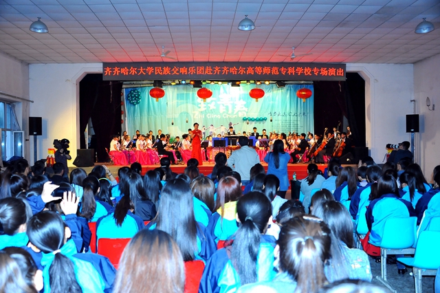 齐齐哈尔大学民族交响乐团赴齐师专开展“高雅艺术进校园”专场演出,得到了我校领导和演出高校领导的高度重视、精心指导;我校党委宣传部和演出高校党委宣传部通力协作;各有关单位密切配合、保障到位,形成了齐心协力送“高雅艺术进校园”的浓厚氛围;我校音乐与舞蹈学院民族交响乐团精心遴选节目,积极组织乐团排练,乐团师生克服了诸多困难,展现了我校师生的艺术风采和良好的文明素养,取得了演出效果与观众满意双丰收,全体演职师生以汗水和心血浇灌的高雅艺术之花璀璨绽放。