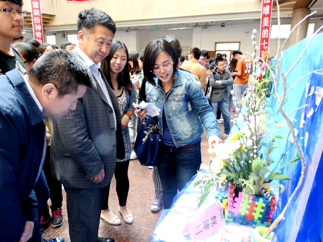 5月28日,由齐齐哈尔大学生命科学与农林学院承办的黑龙江省插花花艺研究会齐齐哈尔分会第四届插花花艺大赛及作品展在西主阳光大厅隆重举行。校长马立群,副校长李英杰现场观看作品,听取参赛学生关于作品创意的汇报,并给予热忱肯定和积极鼓励。