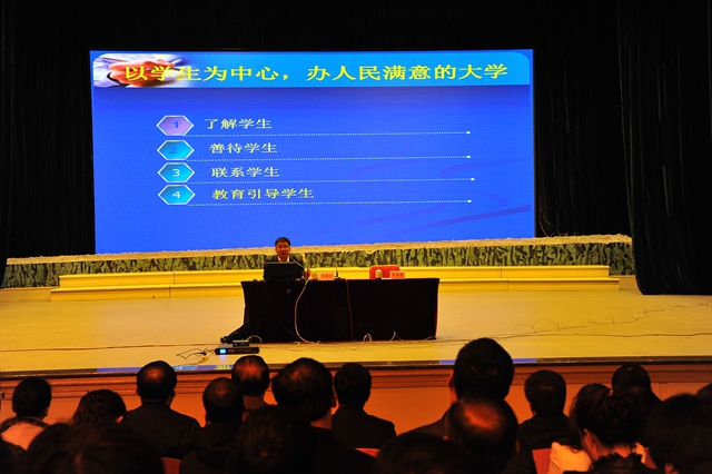 校党委书记李海红在题为《以学生为中心 办人民满意大学》的专题报告中,从办好人民满意大学的总目标的高度,从立德树人,帮助学生成长、成才、成人的视角,从“了解学生、善待学生、联系学生、教育引导学生”等四个方面,结合校情,联系2013年赴澳大利亚海外研修班的学习体会,全面阐述了“做对学生最好的老师、办对学生最好的学校”的办学理念。他的报告以实证和数据说话,摆事实、讲道理,既有对我们教育对象的客观研判,也有对我们在培养教育学生过程中存在问题的深入分析和理性思考。报告立意深刻、切合实际,指导性、针对性和操作性都很强,特别是对于我们怎样“做对学生最好的老师”、学校怎样“办对学生最好的大学”具有重要的指导意义。