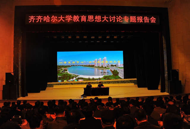 学校于3月14日隆重召开了“教育思想大讨论动员大会”。目前,全校各部门、各单位的教育思想大讨论活动正按照《齐齐哈尔大学开展教育思想大讨论实施方案》的部署,扎实推进,充分体现了我校师生为加快我校高水平大学建设步伐凝神聚智的高度责任感。为了将教育思想大讨论活动引向深入,学校决定举办系列专题报告会,校党委书记李海红所做的题为《以学生为核心办人民满意大学》专题报告即是首场报告,相信对于学校教育思想大讨论活动深入开展特别是第二阶段“讨论提高阶段”一定会起到重要的引领和推动作用。