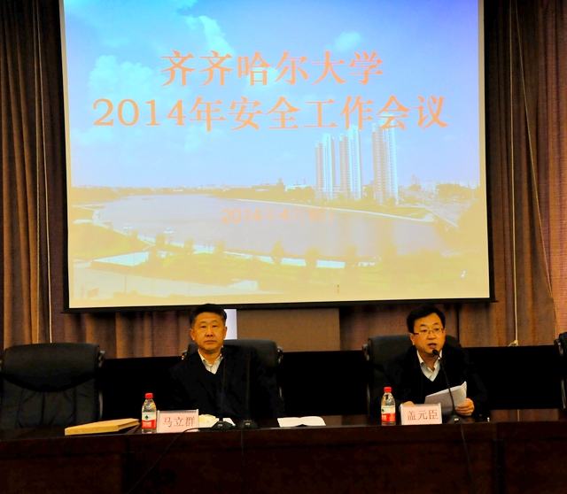 校长马立群出席会议并讲话。校党委副书记盖元臣主持会议并总结了2013年安全工作、部署了2014年安全保卫工作。学校安委会全体成员、全校副处级以上干部参加了会议。