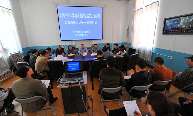 按照《齐齐哈尔大学开展教育思想大讨论实施方案》(齐大党字[2014]3号)的部署及要求,4月29日下午,我校在后勤处会议室召开了主题为“为高水平大学建设提供坚实后勤保障”的后勤工作专题讨论会。副校长王刚出席会议并讲话;校长助理、后勤党委书记、处长尹鸥主持会议,基建办和后勤处班子成员、科级以上干部、班组长代表、一线工人代表参加了会议。
