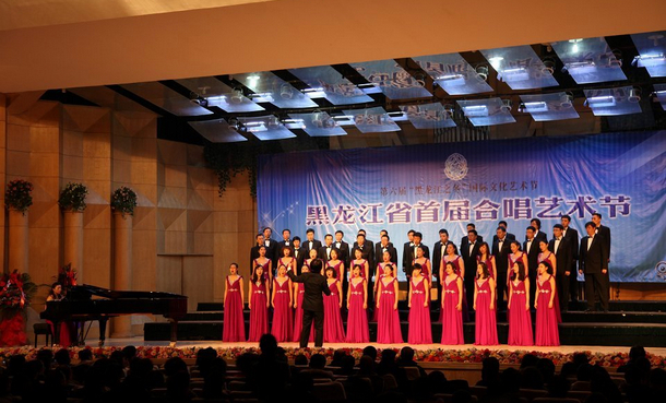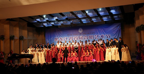 美妙的音乐,感人的歌声,传递着新年的诚挚问候,表达着人们对新年新发展的新梦想。2013年12月27日,荣获过全国教师合唱金奖的“齐齐哈尔教师合唱团”赴哈尔滨参加第六届“黑龙江之冬”国际文化艺术节系列活动之一的黑龙江省首届合唱艺术节,与哈尔滨民营企业创办的颇具代表性的“哈尔滨悦城合唱团”联合演出。校领导李海红,张学军、李敏义在哈尔滨音乐厅观看了“齐齐哈尔教师合唱团”在黑龙江省首届合唱艺术节的演出盛况。