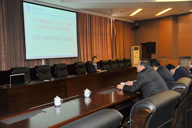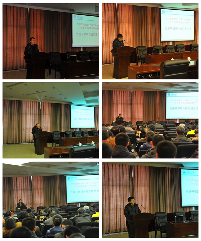 2014年2月27-28日,为深入学习贯彻落实党的十八届三中全会精神和习近平总书记系列讲话精神,提高中层班子的凝聚力和战斗力,加强党性修养,增强领导干部的政治意识、大局意识、责任意识,不断提高政治素质和业务能力,带头转变作风,勤奋工作,勇于担当,推进有特色高水平教学研究型综合大学建设,学校党委在德润大厦四楼会议室举办了处级干部培训班。