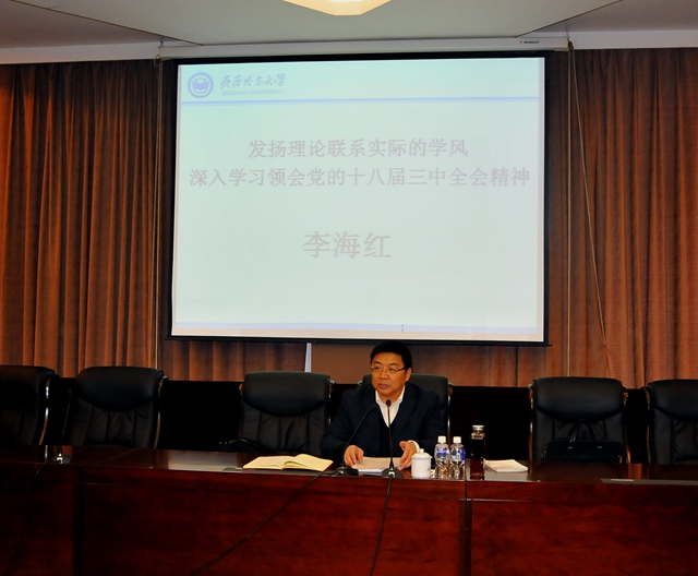 校党委书记李海红做《发扬理论联系实际的学风,深入学习领会党的十八届三中全会精神》专题报告