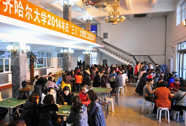 明媚三月,春意盎然。为庆祝第104个“三八”国际劳动妇女节,使全体女教职员工度过一个欢乐、温馨的节日,学校工会精心策划组织,于3月7日下午在校文化宫举办了丰富多彩的庆祝活动。校领导王凤琴,郑喜群、邓启刚、李英杰、李敏义,党委常委、组织部部长齐宏伟与来自各基层工会的一千余名女教工共同庆祝“三八”国际劳动妇女节,为2014年幸运女教工抽奖、颁奖,并向全校女教职员工致以节日的问候。