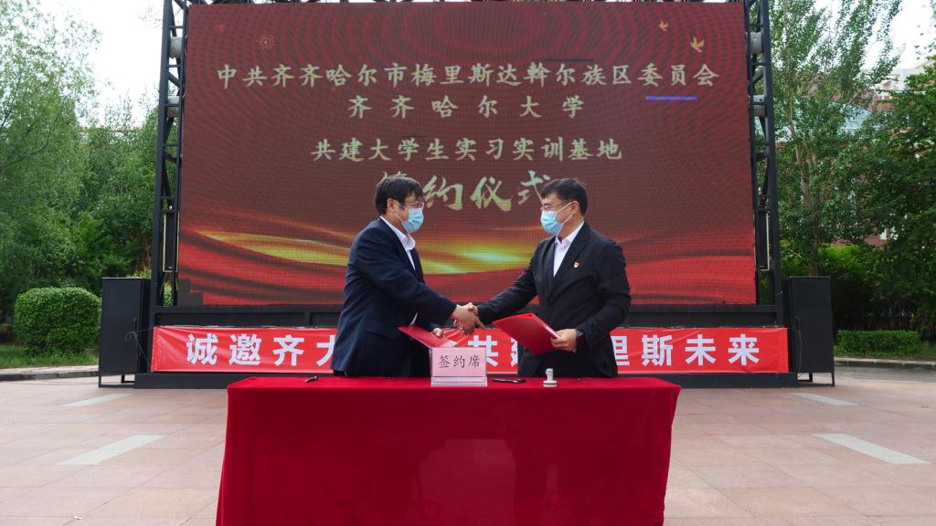 宣讲招聘会上,张文治与郝宪庆代表校区双方共同签署了《共建大学生实习实训基地框架协议》,双方将按照平等互利、真诚合作、优势互补、共同发展的原则,积极开展校地合作,为更多环湖大学优秀毕业生搭建融入乡村振兴事业的平台,为梅里斯区振兴发展厚植人才保障。