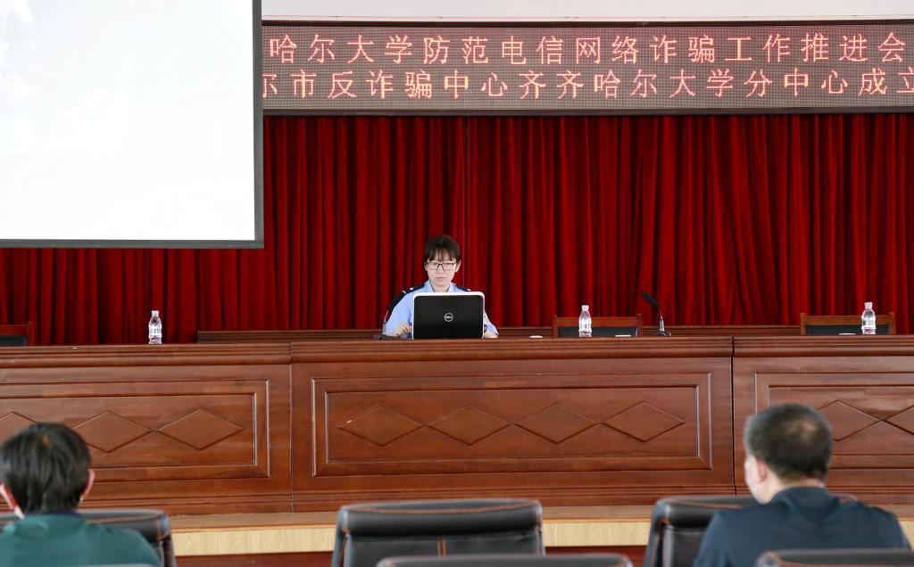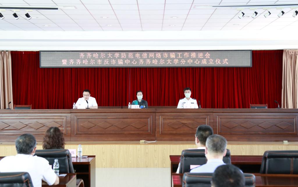 为贯彻落实习近平总书记关于打击治理电信网络诈骗犯罪工作的重要指示精神,推进平安校园建设,6月15日下午,学校在求实楼五楼会议室举行了防范电信网络诈骗工作推进会暨齐齐哈尔市反诈骗中心齐齐哈尔大学分中心成立仪式。